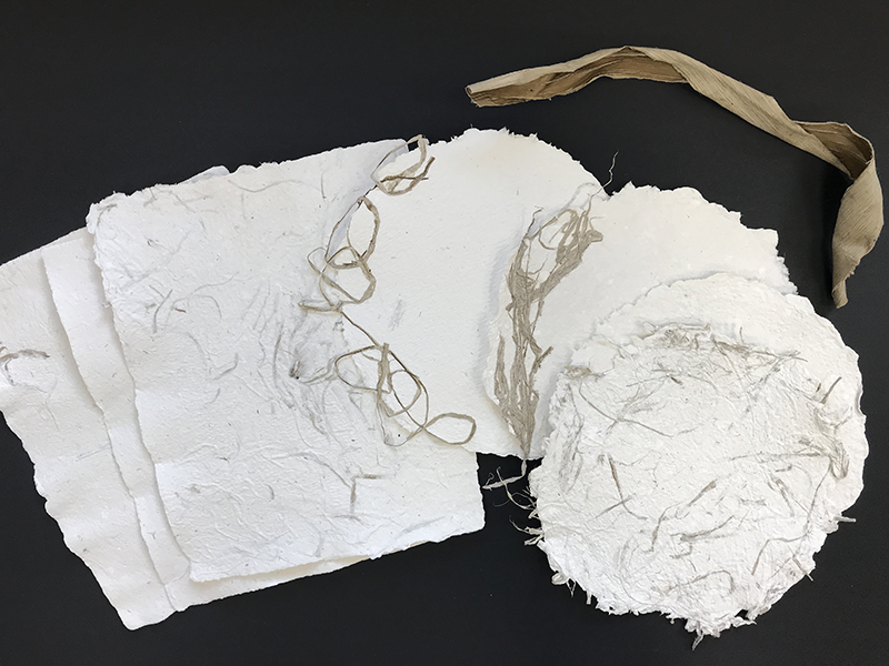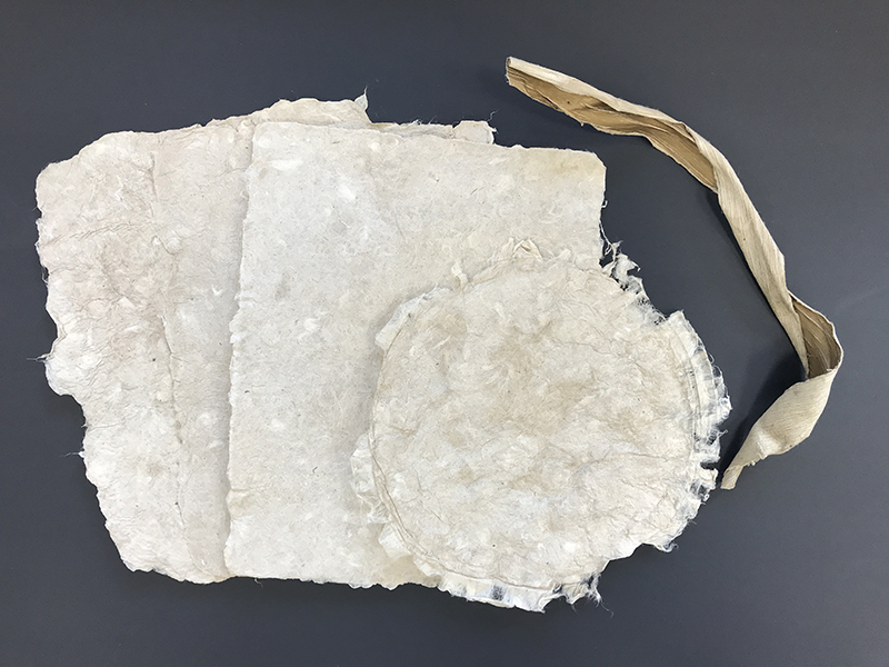 S’ensuivra la confection du papier selon la méthode ancestrale avec des cadres conçu pour cette tâche (moules ou tamis). On peut en confectionner soi-même avec des cerceaux de broderie, des châssis et du revêtement moustiquaire.