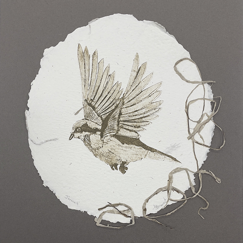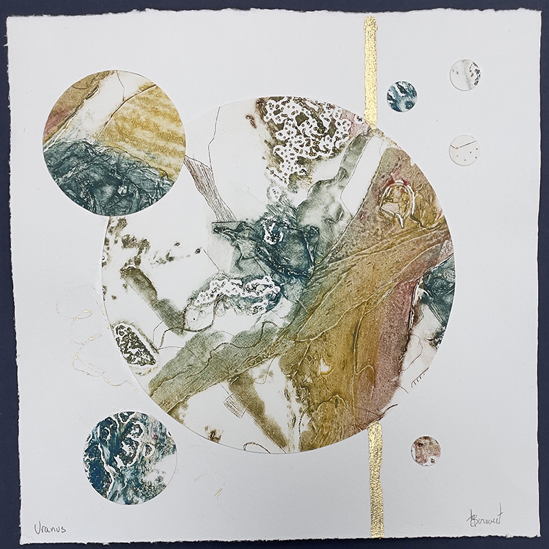 Ces œuvres uniques imprimées sur papier coton et même sur du papier végétal que j’ai confectionné moi-même sont parfois abstraites et d’autres fois figuratives. La nature, les astres, le monde en constante évolution se dévoilent ici sans prétention.