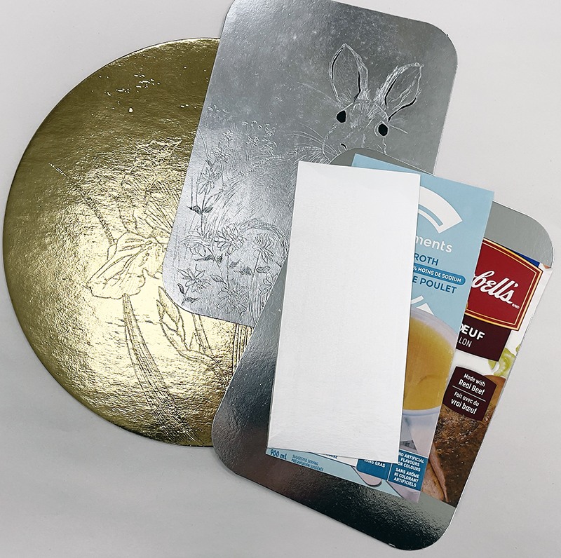 Dans votre quotidien, les boîtes de jus, de bouillon, emballage de produit laitier et de pâtisserie sont que quelques exemples de contenant pouvant être lavés et récupérés pour l’élaboration de vos gravures.