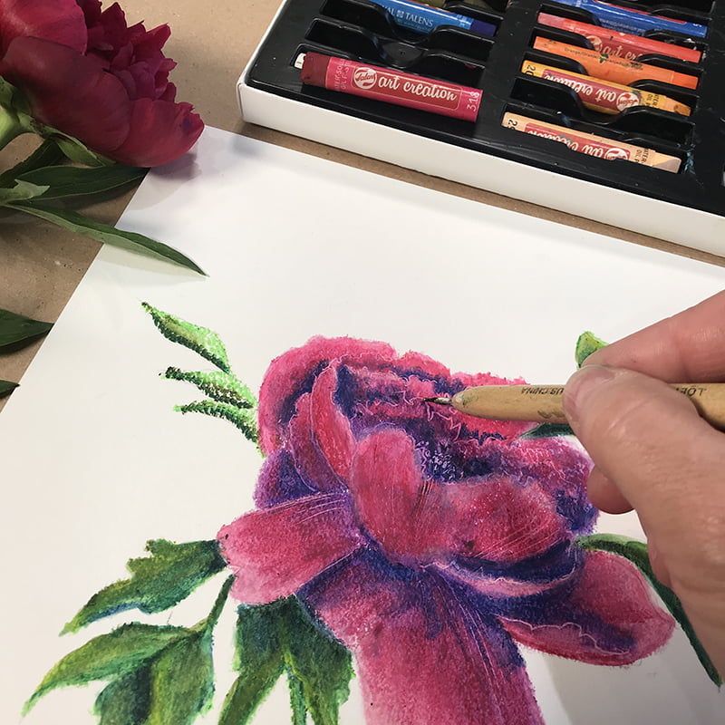 Tout comme les pastels traditionnels les pastel Art Creation soluble à l’eau s’applique en crayonnant la surface délicatement afin de ne pas trop la saturer; cela est essentiel à retenir si on veut superposer et amalgamer plusieurs couleurs.