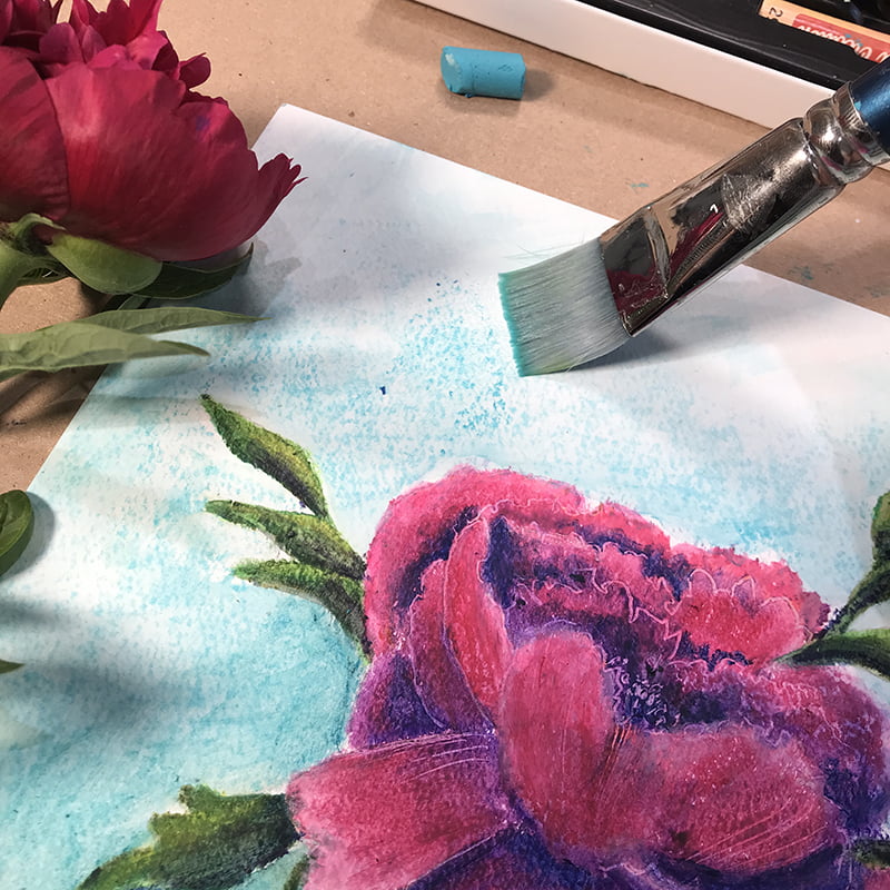 Je vous propose cette fois de faire l’expérimentation du pastel à l’huile soluble à l’eau.